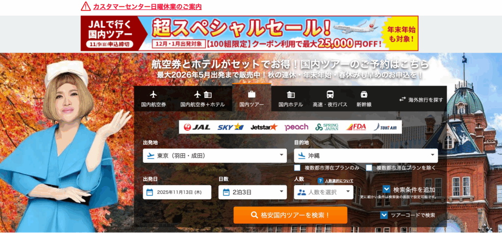 おすすめの国内旅行ツアーサイトをご紹介します。