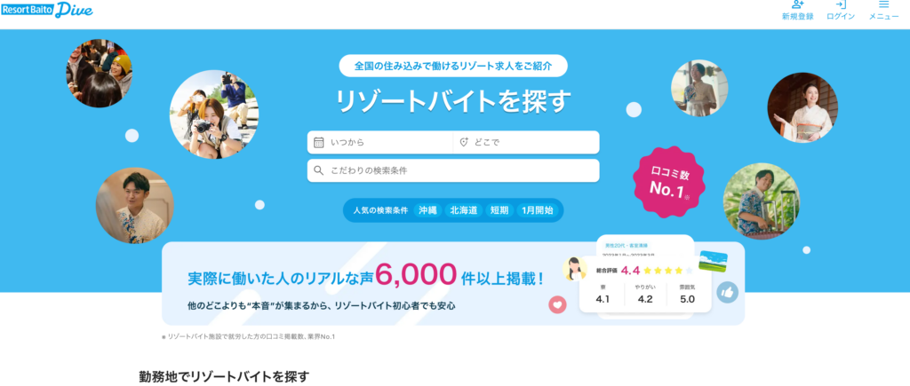 こちらのサイトは、全国のリゾート地に住み込みで働く